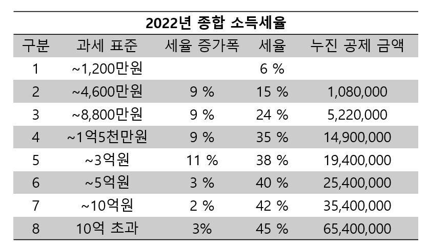 1) 2022년 종합 소득 세율 적용